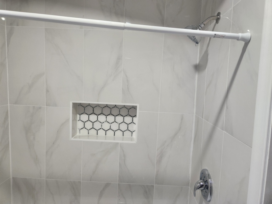 Modern bathroom with custom tile